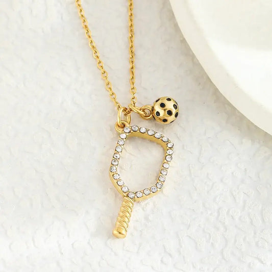 Pickleball Necklace 18k Gold Plated Rhines Stone Gift