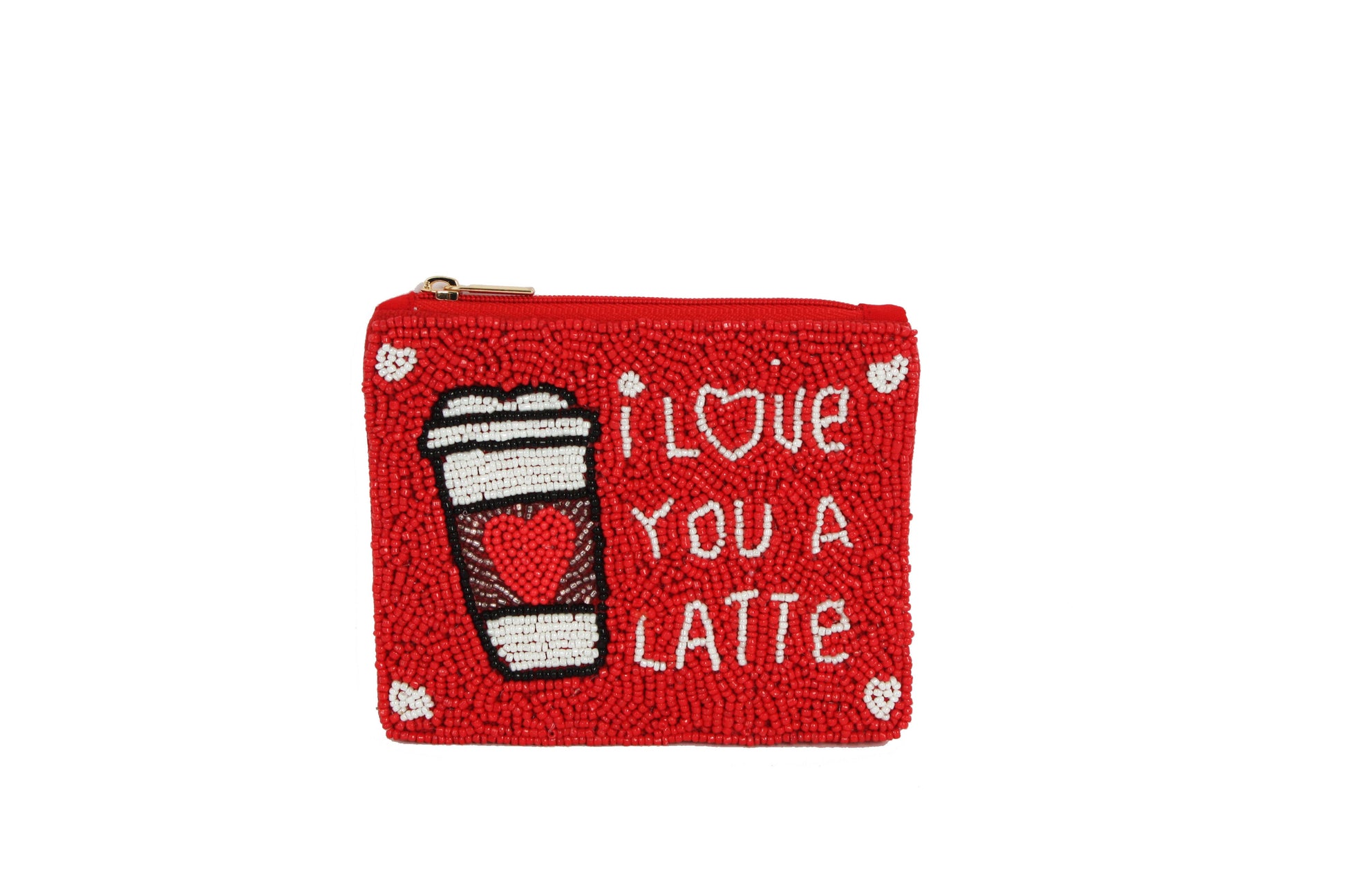 Our Ladies Fully Beaded LOVE A LATTE THEME Coin Purse